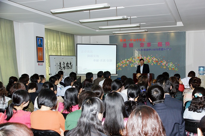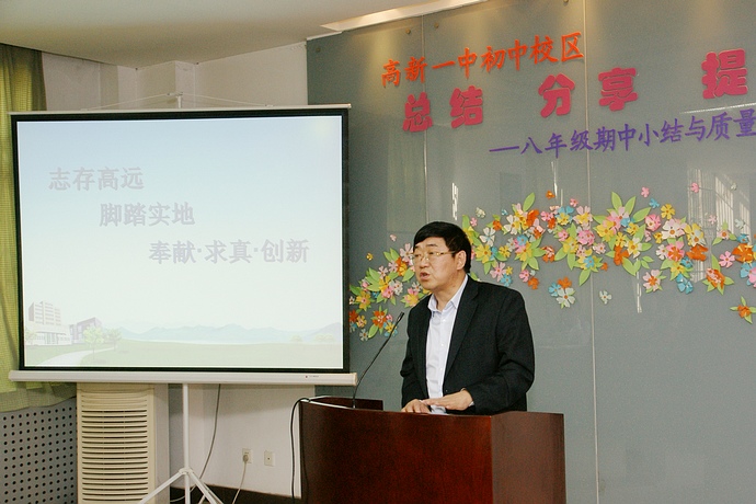 前来参会的王校长、贺副校长和刘副校长被会场真诚、温馨、热烈的气氛感染,他们做了即兴的精彩发言。特别是王凤进校长对八年级老师前期工作中的“勤奋”“科学”“务实”“付出”给予了充分的肯定,王校长的讲话凝练深刻,极富教育哲理,他提出:“用爱做教育、用心做教学,用智慧做管理”,这既是对八年级全体教师半学期工作的充分肯定与激励,更是对全体教师在工作思想和实践行动上的引领,相信全体教师会将此次会议作为工作征途上的新起点,继续勤勉敬业, “志存高远、脚踏实地”,“奉献、求真、创新”,“团结协作”,共同谱写高新一中初中校区美好教育梦想的新篇章。