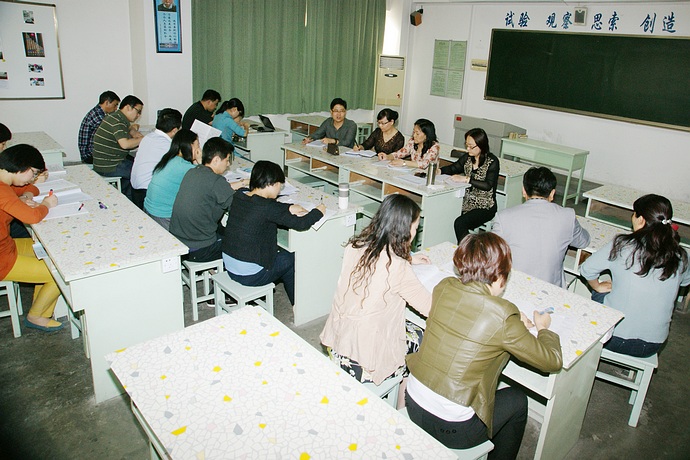 期中教学质量分析总结会率先在非参考学科中拉开序幕。“政治、历史、体育”团队、“地理、生物、音乐、美术、微机”团队对半学期工作进行总结与反思。老师们主要围绕“关于八、九年级教育、教学工作衔接的思考”、“公共学科课堂有效组织与管理”、“学科优质教学设计”、“常规教学实施中的有效经验和存在的问题”等话题进行了交流与研讨。参会老师积极发言,充分介绍好经验,反思存在的问题,会场气氛热烈温馨。