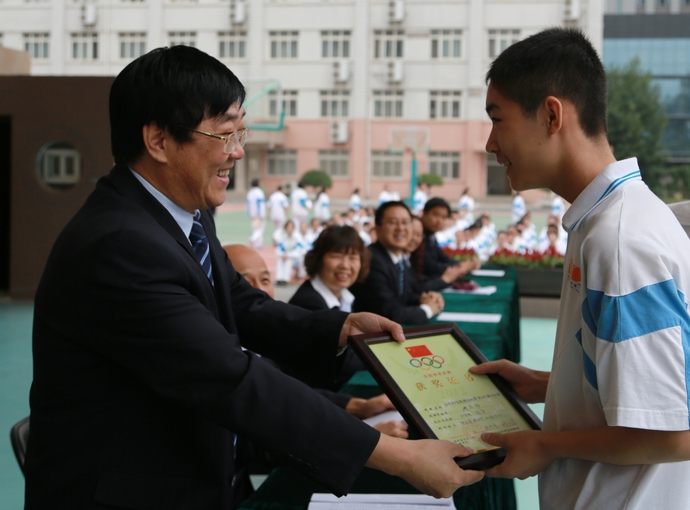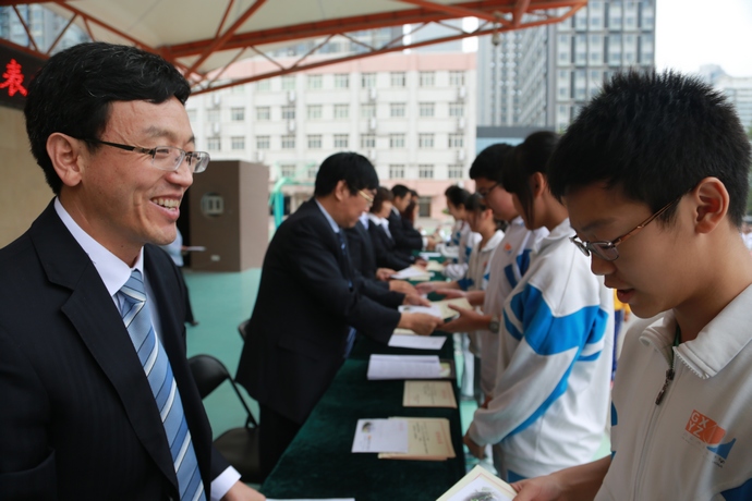 校长王凤进为获得优异成绩的学生颁发获奖证书
