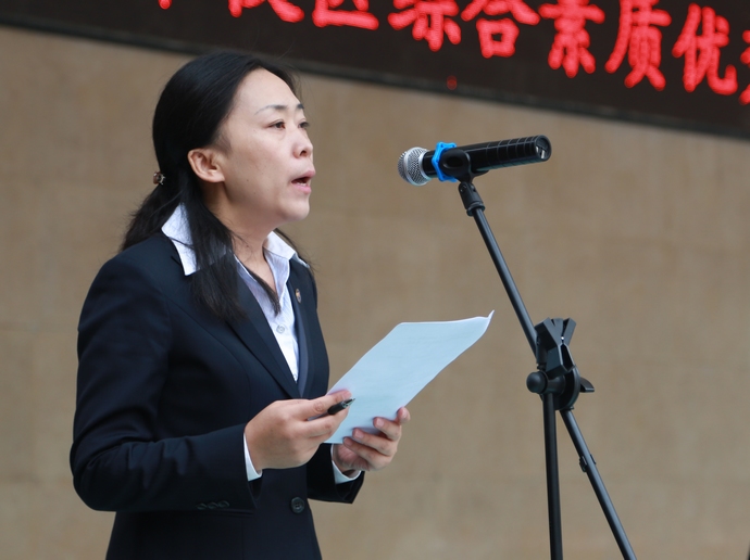 刘丽君副校长主持了大会,王凤进校长宣布了表彰决定,张小英副校长和李红霞副校长分别宣布了2014届、2015届综合素质优秀学生获奖名单。