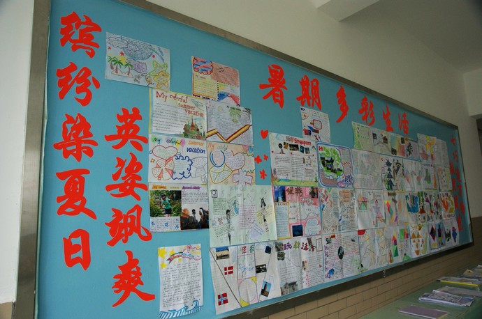 英语探究重在培养学生阅读能力、交流能力,同学们进行大量的阅读、摘录,自选英文版的名人演讲并流利模仿,还给经典电影配音,同学们制作了以“My colorful summer vacation”为题的精美英文小报,体现了同学们多姿多彩的暑假生活……