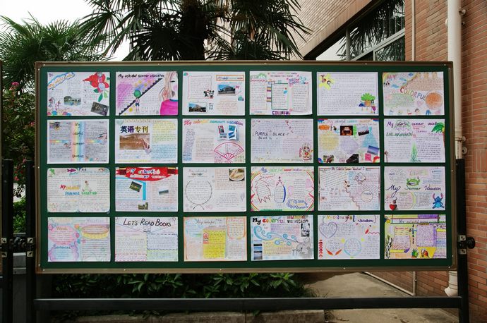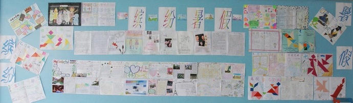 一份份精美的小报、一幅幅灵动的字画、一张张精美的七巧板图片、一份份详实的调查报告,一张张亲自参与刻录的光盘,见证了同学们丰富多彩的暑假生活,讲述着暑假中的一个个故事。玲珑的画面、丰富的文字,若静若动,悦目无比。同学们暑假的付出给大家带来了丰盛的视觉盛宴。