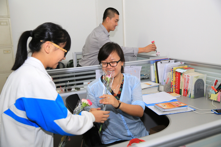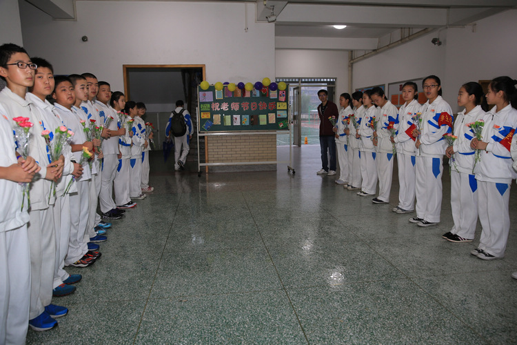 镜头二:二分校为全体教职工送上鲜花和祝福