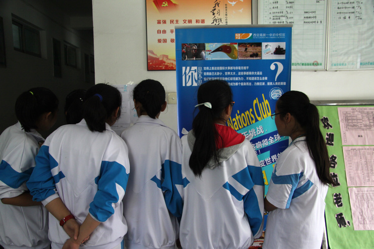“模拟联合国”社团制作自己的海报,大篇幅突出“未来领袖”的特点,用“只要你相信自己,勇于挑战”、“你的声音将响彻全球!”等口号打动学生,并利用与政治、历史、地理等科目老师的合作机会宣传鼓励学生报名;