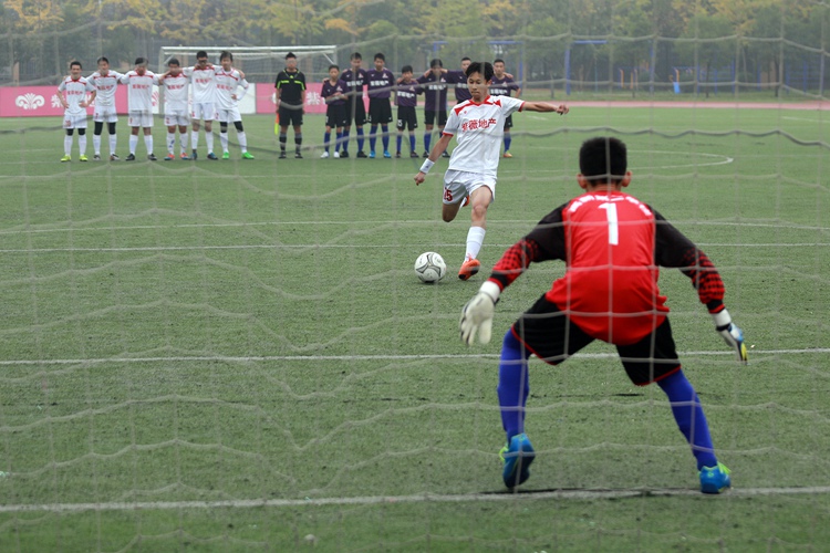 最终,在点球大战中,我校1号守门员王啸羽成功阻击了对手的进攻,与此同时苗准和李承泽两位队员以犀利的脚法成功击破对方球门,最终我校以2:1取得首轮胜利。