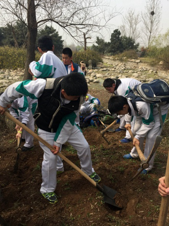 3月2日早晨,七年级生命奇迹社团的同学们在孟晶、杨静、隋洁和胡圆四位老师的带领下去往秦岭野生动物园进行植树活动。此次活动中,同学们参观了野生动物园,认真聆听了讲解员对各种动物的名称、生活习性及目前的生存状况进行的讲解。参观完毕,大家在工作人员指定的草坪进行野餐,感受春意、与同伴分享自己精心准备的午餐。饭后,大家拿起画笔做起了自然笔记,有的画看到的动物,有的画初春的植物,将自己对自然的观察、体会和感悟跃然纸上。短暂的休整后,期待已久的植树活动展开了。整个过程充满着欢笑和汗水,同学们从刚开始连铁锹和镐头都不会用,到最后个个挥汗如雨,挖出一条条沟壑,亲手种上一株株翠绿的竹子,那郁郁葱葱的小竹林承载着同学们的植树热情和对未来的美好憧憬。他们种下了绿色,体会了艰辛,体会到自然中每一抹绿的来之不易,定会用心去呵护自然!