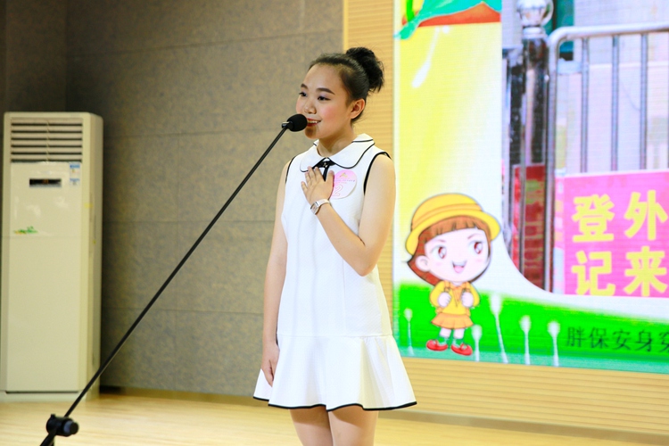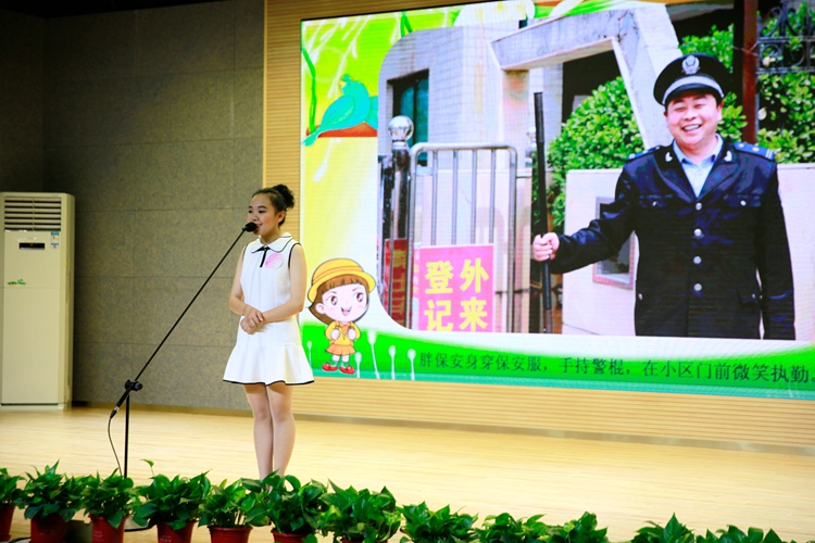在此次比赛中,我校八年级创新二班马家瑛同学讲述的是“胖太阳”的故事。这个“胖太阳”其实是她们小区的一名胖保安,在平时的工作中,胖保安对每一个住户都是热情、热心:搀扶醉酒住户、帮住户捡起散落在地上的钱送他回家;看见手拿快递不方便开门的住户走来时,胖保安会立刻去帮他们开门……,每一件件细小的事情都在刻画着胖保安细心、贴心、有责任心的形象。最终,马家瑛同学凭借着对比赛主题很好的把握以及出色的现场表现,赢得了最具人气奖和初中组一等奖的好成绩。