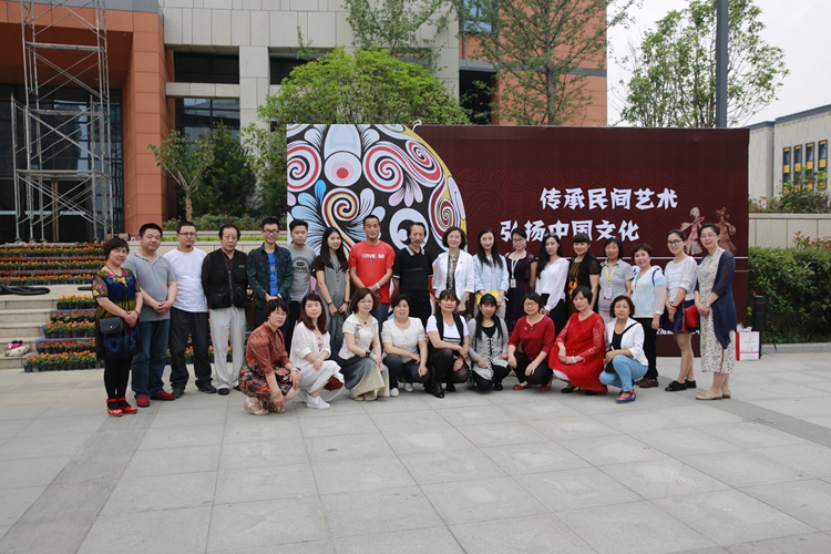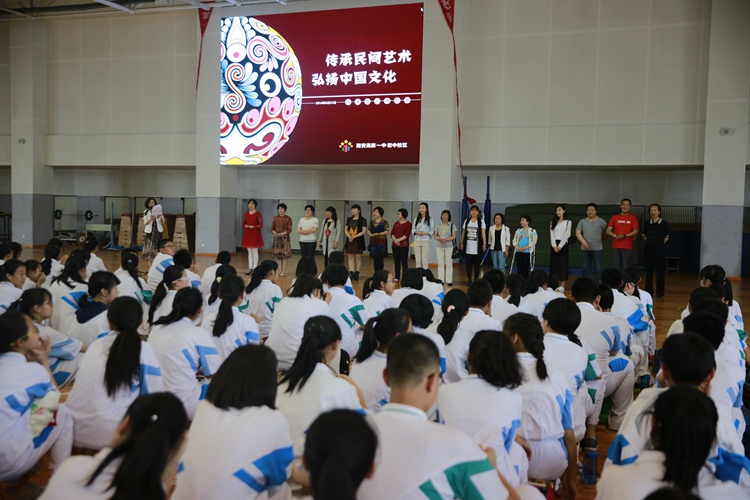 “传承民间艺术弘扬中国文化”,5月21日,高新一中初中校区邀请陕西省非物质文化遗产传承研修班的15位民间艺人走进校园,与学校纸艺、布艺、扎染、工笔国画、书法陶艺等10个美术学科社团的师生共话民间艺术,弘扬中国文化。