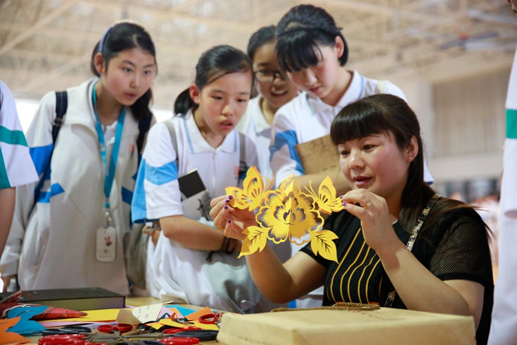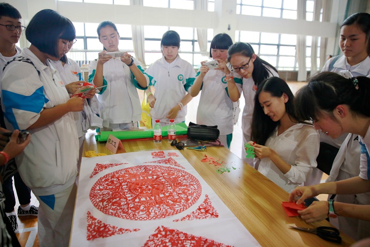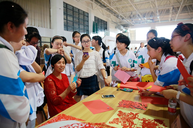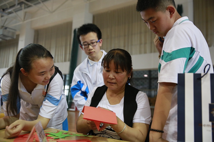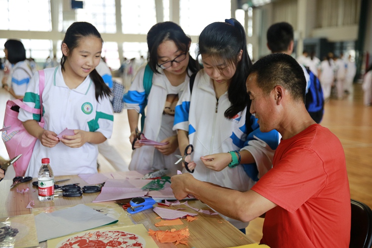 看着一张张剪纸在民间艺人的巧手下,瞬间变成一件件精美的艺术品,同学们个个称赞不已。扎染社团的朱若菲说:“学校举办的这次活动,不仅仅是让我们向民间艺人学习,更是对传统文化的一种传承。”