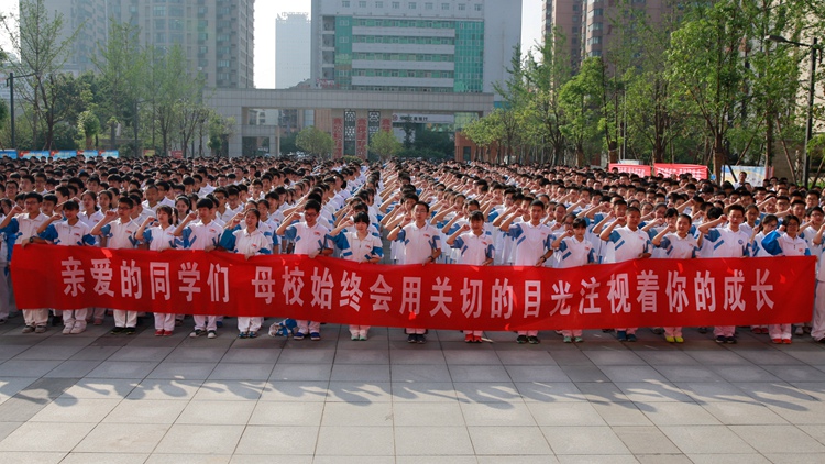 在毕业典礼上,全体学生紧握拳头最后一次在母校齐声诵读“爱的信条”:“我爱我学校,我爱我班级,我爱我同学,我爱我自己……”。洪亮的声音,在校园回荡,铿锵有力,让人动容。