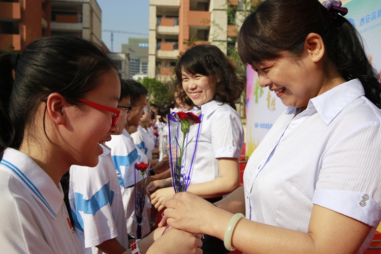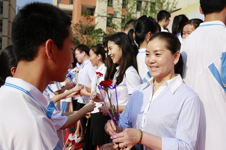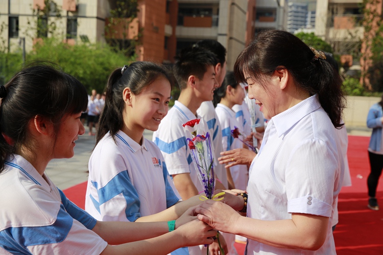 同学们向共同奋斗三年的老师们送上感恩的鲜花