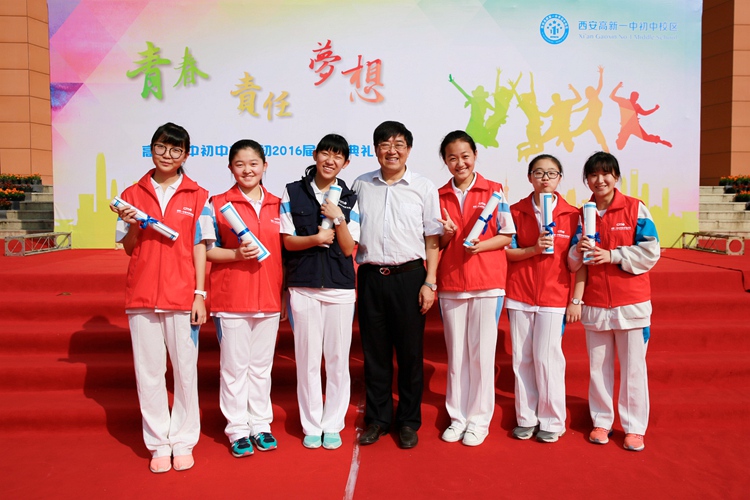 三年砺剑,一朝试锋。伴着老师们的呵护和关爱,凝结着自己的努力和拼搏,满载着收获和成长,2016届的同学们即将迈向新的征途,让我们祝福他们,在中考中取得优异的成绩,在新的起点上,绽放出更加璀璨的光芒。