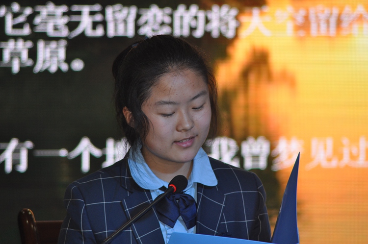王宇佳同学是第一个朗读者,一曲梦幻水乡,众水环绕,那里有绾发的少女,有翠柳的倒影,也有作者魂牵梦绕的向往深情,这篇原创文章定会在这样的舞台上与她相伴一生。
