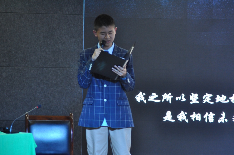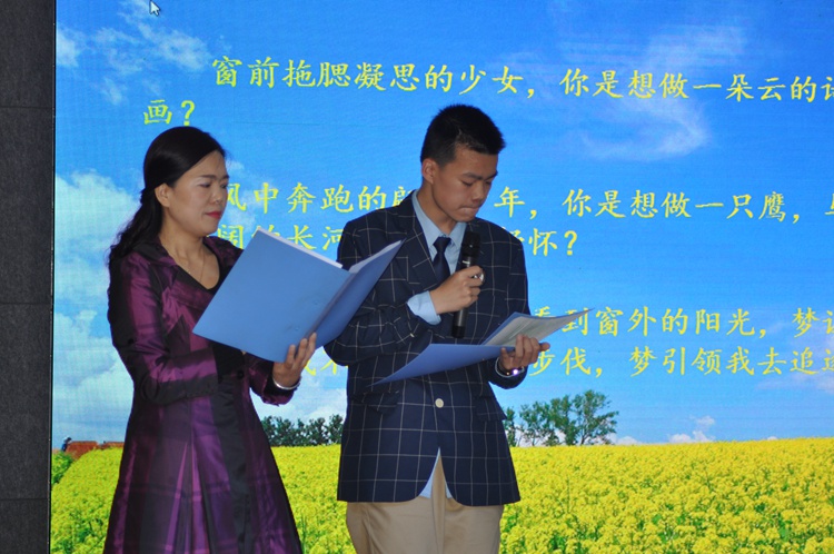 一首诗歌,一份志向。朦胧诗派的代表人物食指的《相信未来》,在两位阳光男生洪志鹏和蒋首恒的倾情诵读下,他们更加坚定了对未来的向往与渴望:只要还有明天,今天就永远是起跑线,明天还在,就永远不要放弃生命的精彩。