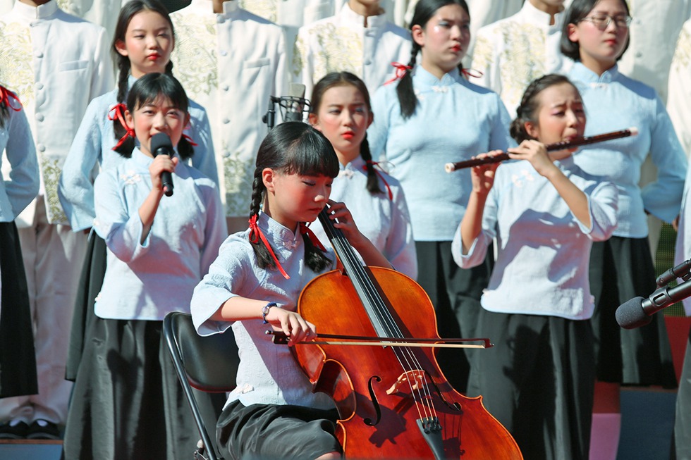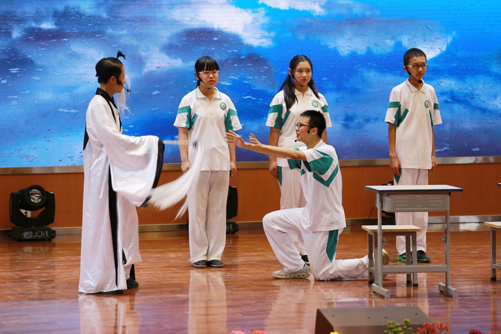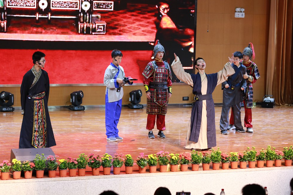 无论是催人奋进、令人鼓舞的红歌合唱、还是以学生真实的学习生活、家庭生活、社会生活的困惑与烦恼为背景,自主创作剧本,自编自导自演的心理剧展演,又或者是以一个个经典的历史人物,一幕幕经典历史画卷,一场场经典历史故事为素材的历史剧展演,都被同学们、家长们、老师们生动形象地搬上了高新一中初中校区的大舞台,歌声美妙动人、气势震撼人心、表演形象生动,全体师生共同陶醉在这艺术的海洋里。