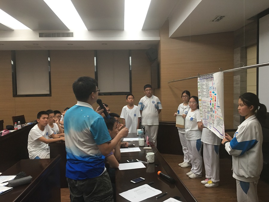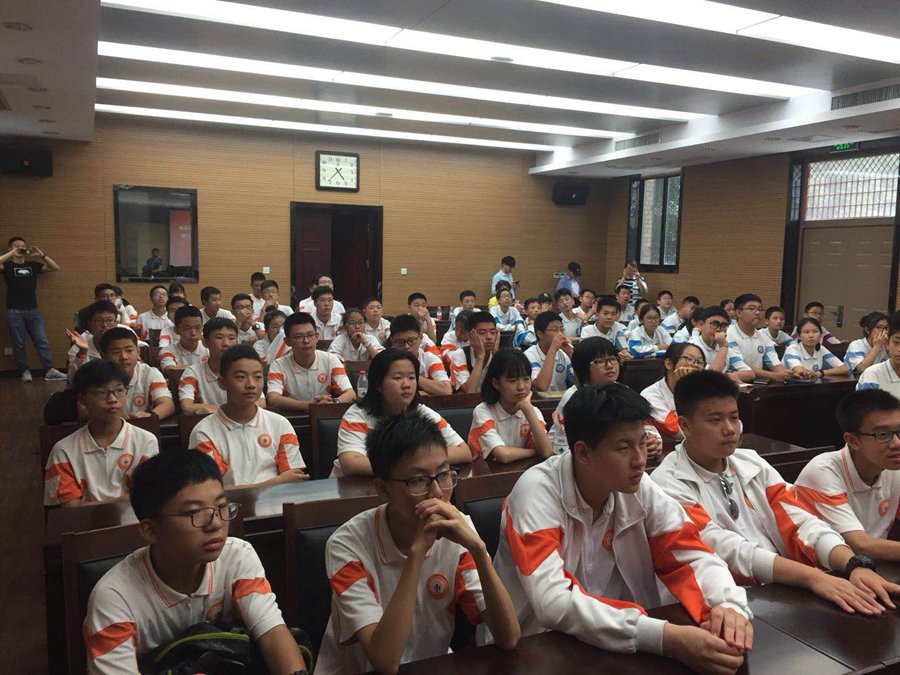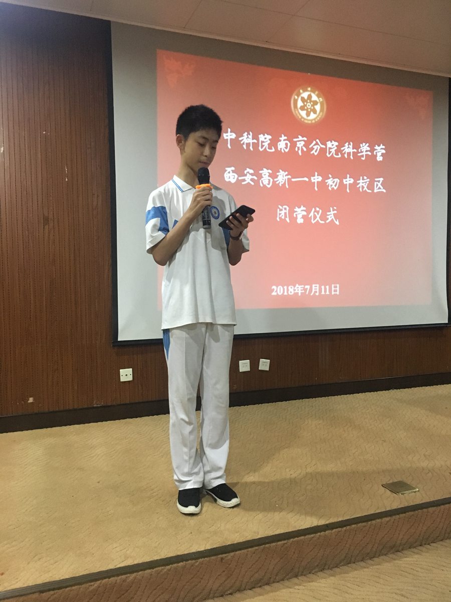 参观完毕,在中国科学院南京分院举行了开营仪式。中科院专家对活动的意义和科技发明的相关知识进行了风趣幽默的互动式讲解,同学们踊跃提问、大胆发言,赢得了中科院老师的肯定和赞许。