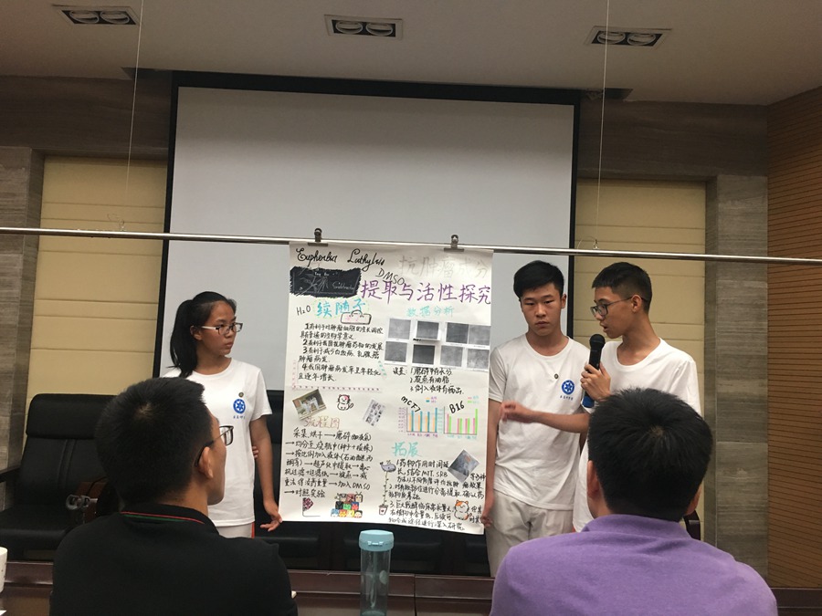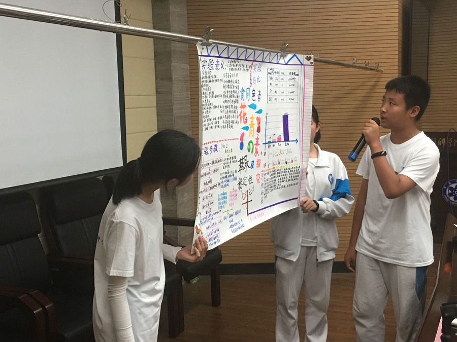 真实的科学结论必须要严格仔细的实验才能得出。在接下来的两天里,高新侠们在中科院专家的指导下分小组选题和实验,最后小组合作完成答辩。孩子们从对课题的陌生,到自己查资料选题,然后在专家的指导克服困难,通过认真实验将自己选定的小课题以画报的形式展示并进行答辩。在这个过程中,孩子们学会了一些实验仪器的使用方法、学到了实验数据处理方法、学到了如何进行问题的研究、如何分析结果得到结论、学到了科学严谨的态度,更重要的是学到了如何在一个团队中实现自己的价值。实验和答辩结束后,部分同学留下了中科院专家的联系方式,收获了自己在学业和人生中的一位好导师。