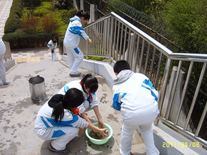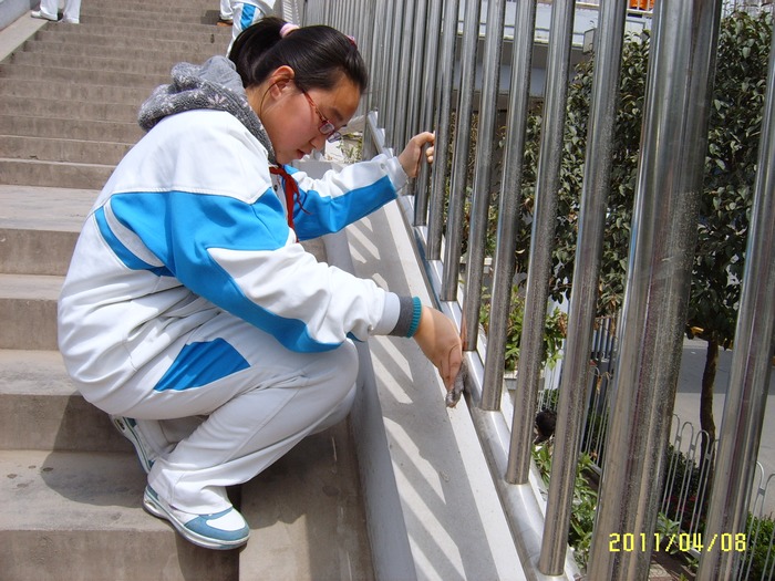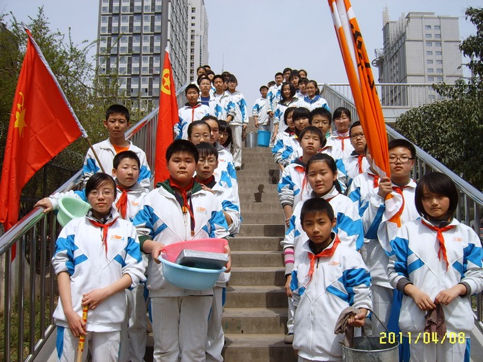 为了迎接世界园艺博览会在西安召开,贯彻“绿色引领时尚”的世园宗旨,提升西安的魅力,为家乡增光添彩。4月8日,我校初中校区校团委联合校大队部组织学校共青团员、少先队员走出校门,开展义务劳动,擦洗学校门前的过街天桥栏杆扶手,团员、队员们自备水桶、脸盆、抹布,积极参与擦洗活动。大家心里卯足了劲,运水的运水,擦洗的擦洗,争先恐后,热情很高。过街天桥上下闪动着身穿一中初中校服的孩子们勤劳活泼的身影。经过紧张热烈的劳动,高新路过街天桥被擦得干干净净,明亮如新。孩子们以实际行动为绿色西安、靓丽高新贡献了自己的一份力量。