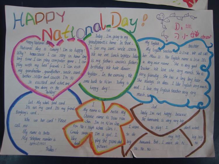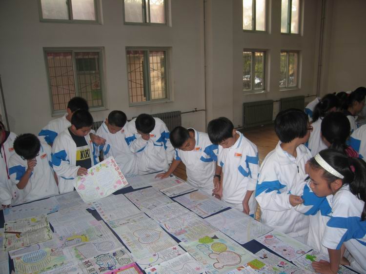 同学们面对精美的国庆小报,面露欣羡之色,或赞叹、或与好友小声评点。他们在观后感中这样写:“通过看同学们的作业,我知道了:生活有多广阔,我们的学习就应该有多广阔!”