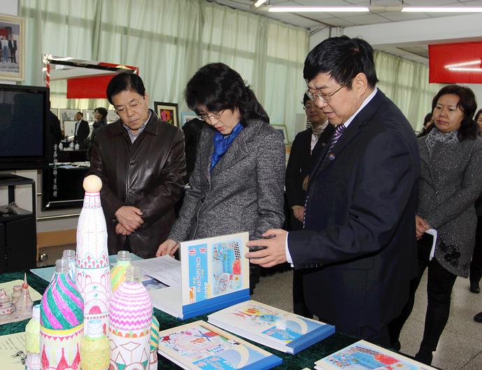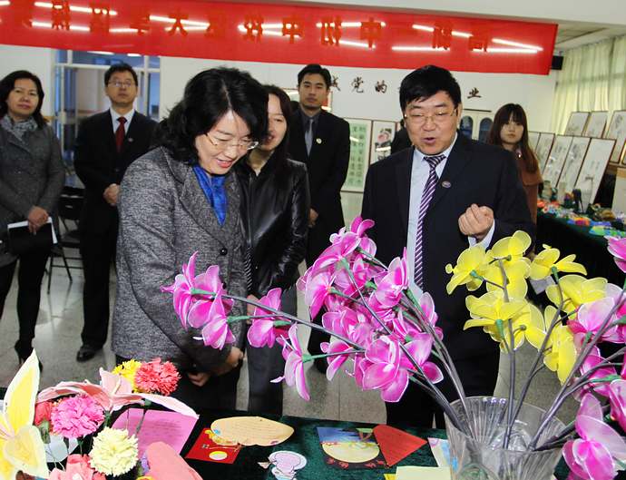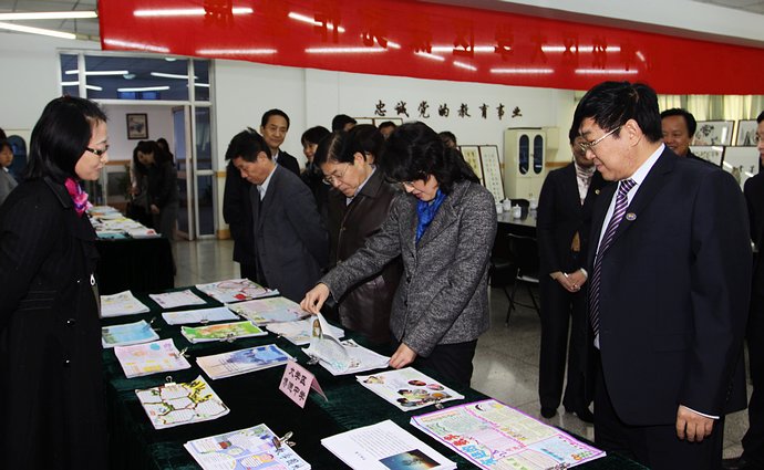 最后,在至美楼一楼,副市长李婧一行参观了我校“大学区探究作业展”。她饶有兴致地翻看了学生们的探究作业后,高兴地说:“你们在这方面带了个好头,通过探究作业,提升了各校学生的创新思维和动手实践能力,发挥了优质教育资源的辐射和带动作用!”