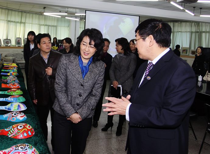 首先,王凤进校长通过展板向市、区领导们介绍了 “大学区管理制”实施以来,我校大学区工作开展的有关情况。