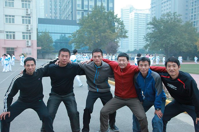 迎着晨曦,伴着清风,在绿色的操场上,红色的跑道中,总有我们六位身材健硕的体育老师在那里等你们----我亲爱的学生们。