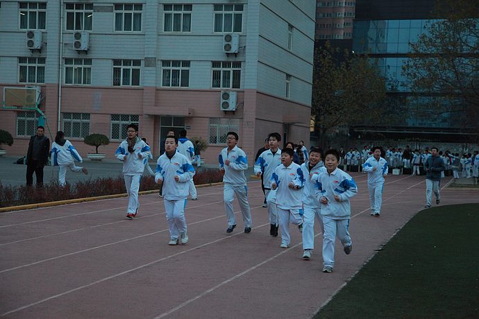 周一到周六的早晨七点到七点半,风雨无阻,日日相伴。虽然目前已经有不少同学克服了清晨早起的慵懒,顶着日渐寒冷的西风,加入到我们中间,投入到火红的锻炼中来,但是我知道还有不少同学还在与早起的困倦和天气的寒冷做斗争,还想把晨练留给下一个明天。