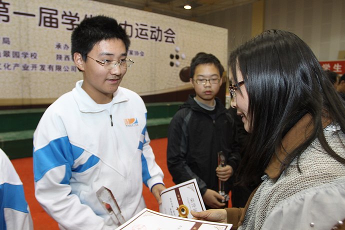 在11月24、25举行的2012年西安市首届中小学生智力运动会围棋比赛中,我校代表队获得了团体第一名、初中组个人第一名的好成绩,为我校赢得了荣誉。