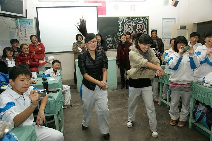 下午13:30联欢会正式开始,师生们首先认真倾听王凤进校长的新年致词。王校长激情的讲话,真情的祝福,让全体师生对高新一中初中校区的未来充满信心!为迈向2013年卯足了干劲!致词结束,在校长助理张小英的带领下,一分校各处室主任及年级蹲点主任代表学校领导走进了每一个班级,为同学们送上最简单最真诚的新年祝福:祝同学们在新的一年里身心健康的成长!同学们也用自己的欢呼与掌声表示真心的感谢。他们纷纷拿出绝活,有的表演歌舞、小品,有的表演魔术、相声,还有班主任和班干部精心设计的各种趣味小游戏用来增加同学之间的默契,增进班级凝聚力。各班的