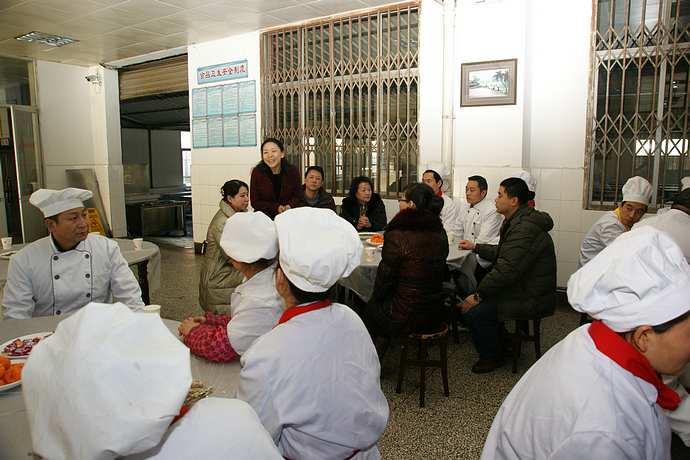 校区领导团队还走进了餐厅,感谢全体工作人员的付出,感谢他们每天起早贪黑,为保证两千余名师生的正常就餐辛苦工作。张小英助理还代表全体师生为师傅们深深的鞠上一躬,并让随行的