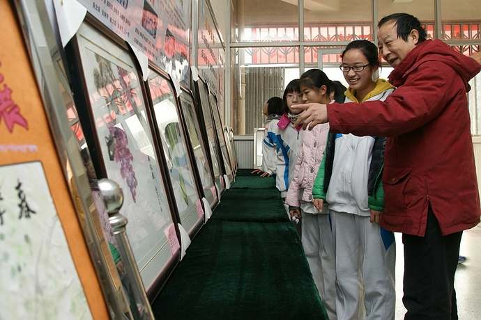 看花色、品果香、观游鱼--美术教师李义水和他指导的学生们在一起
