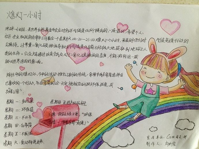 环保,从此刻起并不是熄灭一盏灯,我们在今后的行动中要超越这一个小时,让环保成为一辈子的习惯;