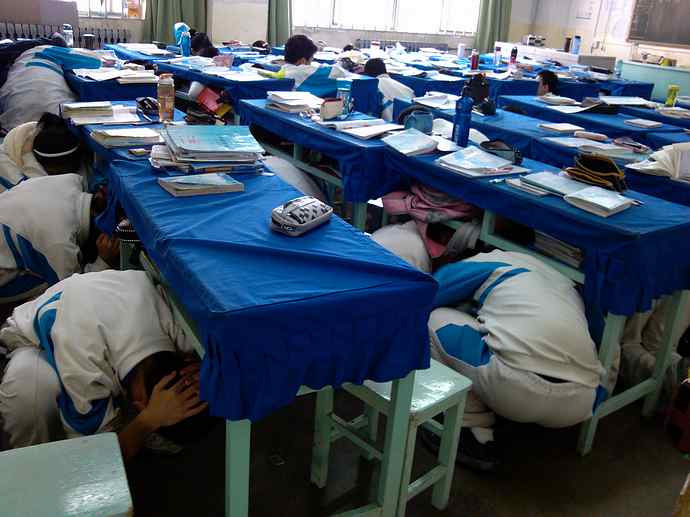 4月10日,政教处将此次演练的具体要求通知相关人员,要求各楼层安全员准时到岗,履行职责。4月11日上午课间操时间,演练正式开始。此次演练分为避震与疏散两个部分。首先由政教处赵老师通过广播发出避震指令,要求学生采用下蹲姿势,在课桌旁用双手或书包护住头颈部位。随后,当撤离指令响起,全体学生在班主任及科任老师的引导下,从教室前后门有序向操场疏散。各年级组长、楼层安全员第一时间到达指定地点,协助疏散学生。所有班级听到演练的铃声后,都能迅速离开教室,按指定路线下楼,到达操场后能按要求站队,各班班长在第一时间向主席台汇报本班人数。此次演练,全体师生撤离教学楼到达操场用时6分钟。演练结束后,各年级组长迅速到主席台前集合,反馈各组疏散中存在的问题,由政教处朱主任进行统一小结,肯定了本次演练的迅速、安静、有序,指出仍少数学生不够重视演练,缺少紧迫感,在演练过程中未按要求做好防护动作或勾肩搭背等需要改进。
