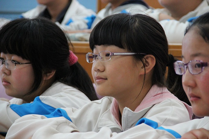 学生听讲入迷
