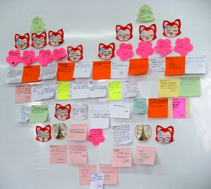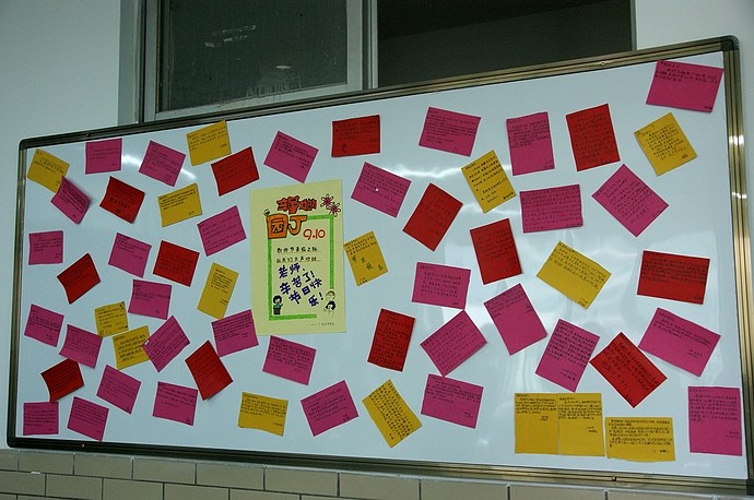 每一间教室的白板,都已被同学们精心布置的五彩“祝福墙”满满的覆盖。