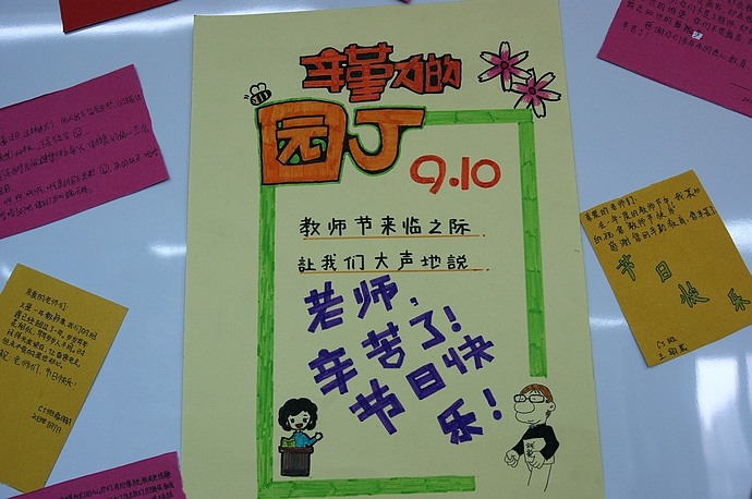 在教师节活动期间,我们利用周一的国旗下讲话由学生代表A2班徐靖颖