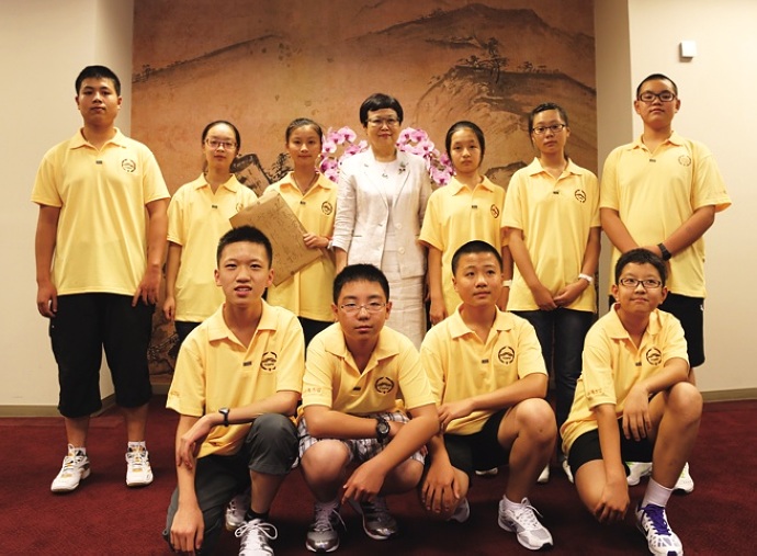 “小小考古家”与台北故宫博物院院长冯明珠合影(一排右一为胡一哲)