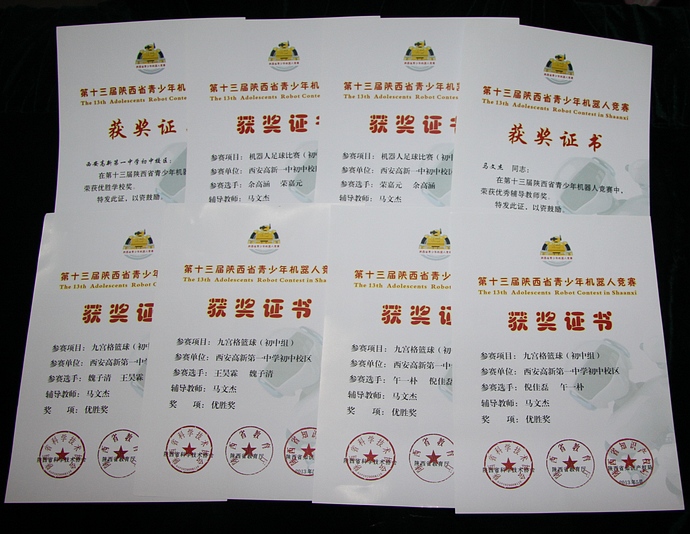 青少年机器人竞赛获奖证书