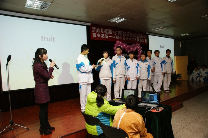 本次英语文化周的比赛场面异彩纷呈,激情飞扬的学生将原本的比赛现场变成了自己的舞台天地。本次决赛由Words Chain, Quick Response,Guessing Game, Story Telling 四个环节组成。每一环节过后,都会有一个组的表演嘉宾为大家献上英文歌曲,曲目或是动感十足、或是悠扬动听、无不展现出我校学生的英语的风采。