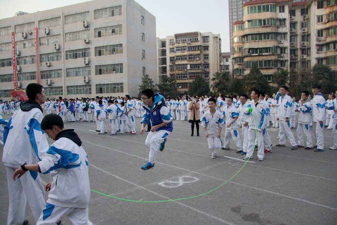 去年冬天凛冽的寒风中,七年级同学翻飞的彩绳激烈的呐喊一扫冬日的沉闷,彰显同学们健康的活力。七年级各年级组在上学期末利用课外活动时间,在二分校举行了本年度跳绳比赛个人项目:小绳单摇、二摇、前挽花、后挽花四个项目男子组和女子组的一分钟竞速,共有352名同学参与了个人单项奖的角逐,其中有176名同学获得优胜奖。