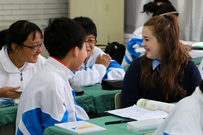 里瑟兰学生与我校学生进行课上讨论