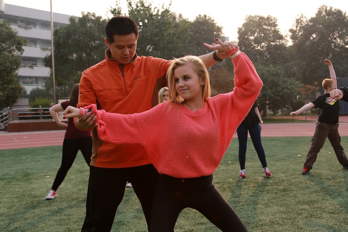 里瑟兰师生一招一式学习中国功夫