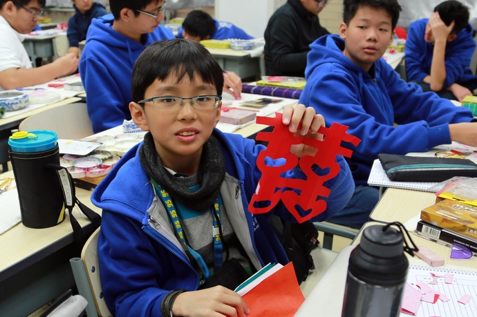 海星中学的学生剪纸课作品