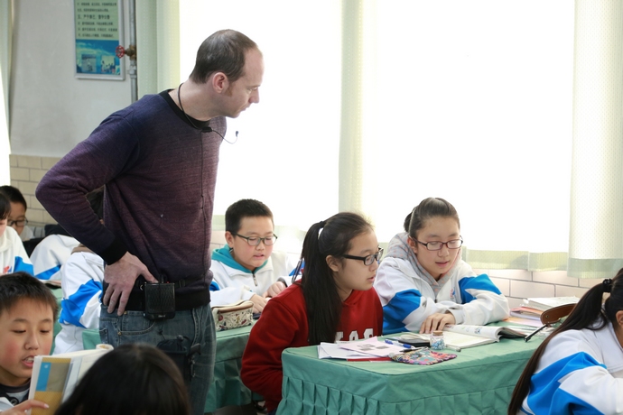 丹绒加东女校学生与我校学生一同上英语课