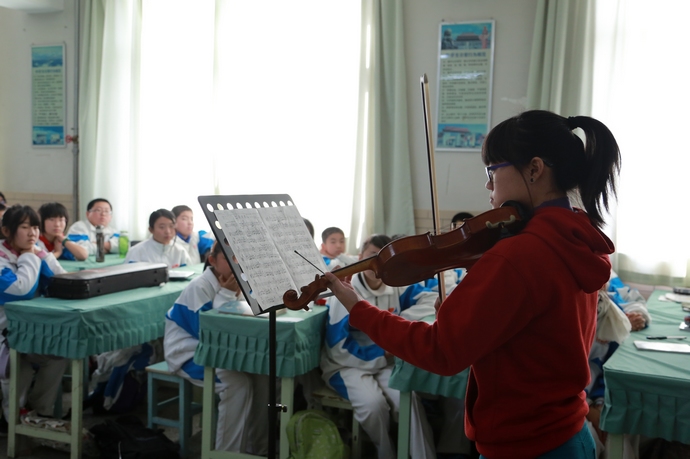 绒加东女校的学生为我校学生表演小提琴名曲
