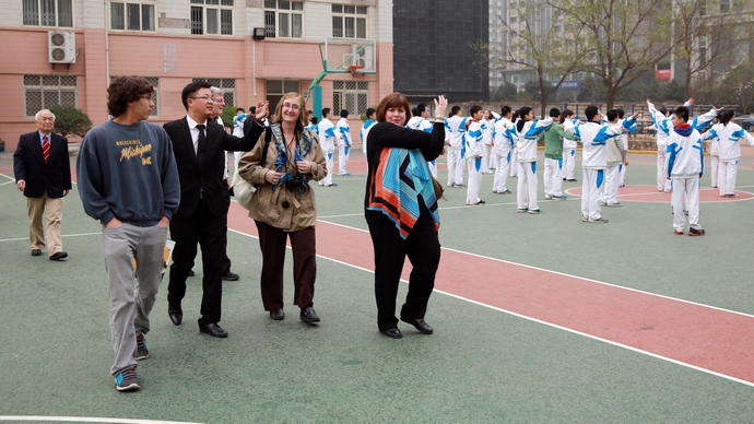 临近放学,美国友人们才依依不舍地结束了与我校学生的交流。依依惜别之际,他们感概万千,对我校教师和学生以及校领导的美好印象溢于言表。两个学校的校长当即表示,希望能继续和我校沟通讨论建立姊妹学校及开展诸如互派交换生等多种类型的交流项目的可能性,并仔细地记下了学校外事办负责人的联系方式,才满意地坐上返回酒店的大巴。