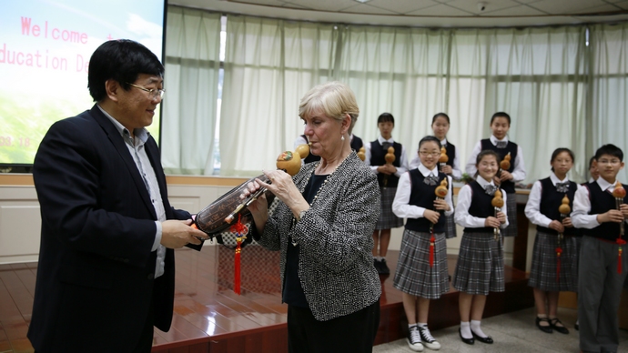 王校长向美国友人赠送葫芦丝