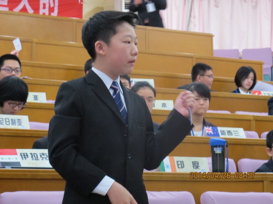 我校8年级学生王一淇作为美国代表发言