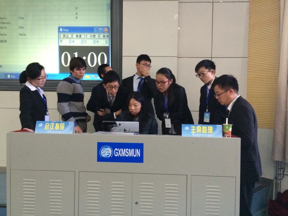 中美两校学生在两天的会议中,投入了自己最大的热情和精力,用流利的英文演讲、内容犀利的发言、激烈的磋商讨论、迅速的危机解决、高水准的文件撰写……带给了我们一场精彩绝伦的模联会议。每一位参与其中的与会国代表、主席团成员、组委会人员、以及学生志愿者,都收获了如此难忘的经历、宝贵的经验、丰富的知识,以及珍贵的友谊!共同期待下一次的会议,fighting!GXMSMUN的MUNers!