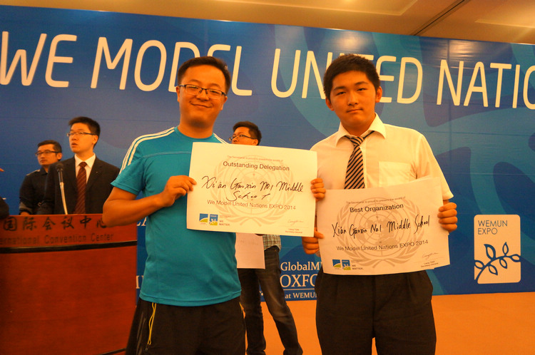 西安高新一中初中校区模联社团(GXMSMUN)共派51名学生代表参加了此次会议,与全世界100多所学校的1000多名初高中学生同台竞技,讨论乌克兰危机、空气污染、战乱地区人权维护等全世界特点问题,寻求解决办法。